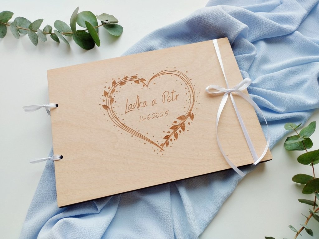 Dřevěné svatební album - boho srdce