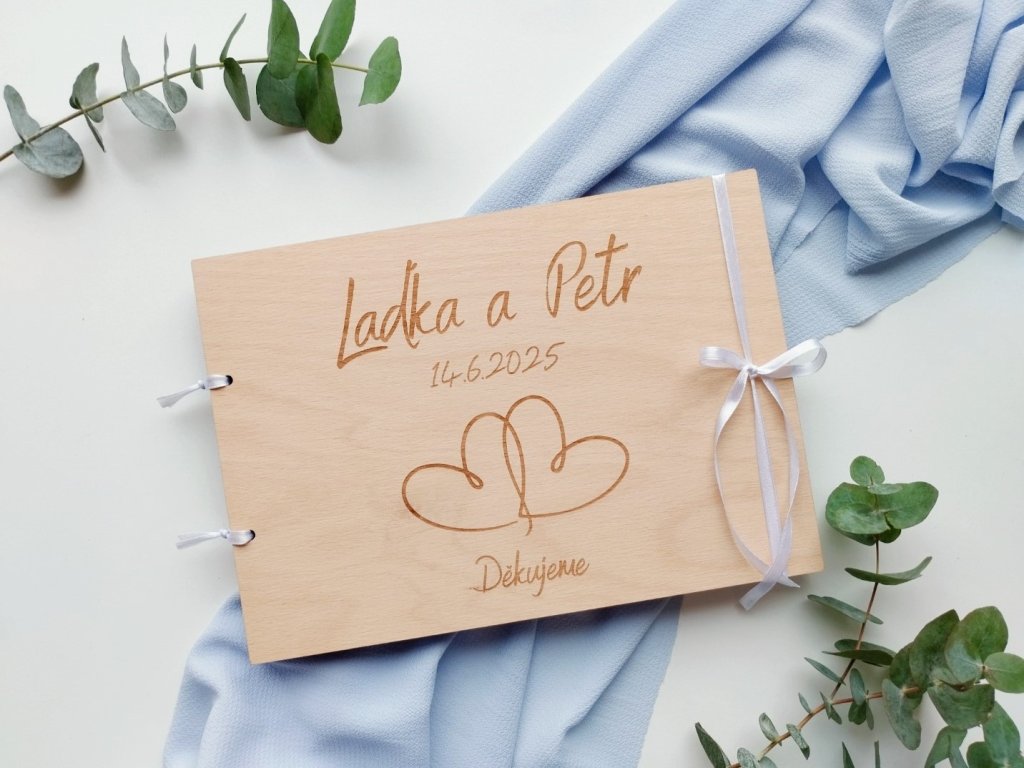 Dřevěné svatební album - srdce